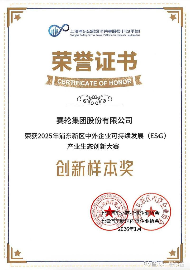 第二届“上海浦东新区中外企业可持续发展(ESG)产业生态创新大赛”评选结果近日揭晓,赛轮集团凭借创新实践与成效,以及与全球领先金属采矿企业淡水河谷的ESG协同实践,成功获评“创新样本”奖,成为唯一一家获此殊荣的轮胎企业。