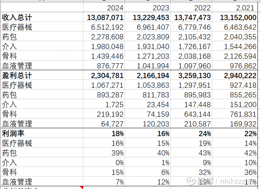 药包的收入还是有持续增长的,并且非常赚钱。然而上市公司正准备把它卖掉。血净的业务质量怎样,没研究过不太清楚,数据大概率是不如药包的