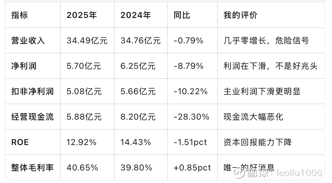 坦白讲,这份年报让我有点困惑——不是那种"发现了金矿"的兴奋,而是"这到底是怎么回事"的疑惑。营收34.49亿元,同比下降0.79%;净利润5.70亿元,同比下降8.79%。