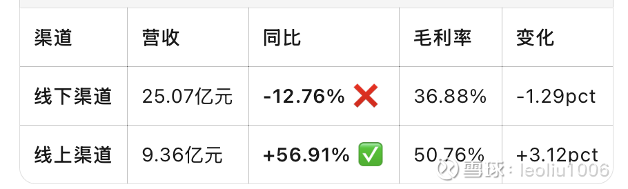 短期看,线上高增长很美。但长期看,线下渠道(占73%)的持续萎缩是个大问题。公司是不是在"弃车保帅"?如果线下经销商体系崩溃,线上能撑起来吗?