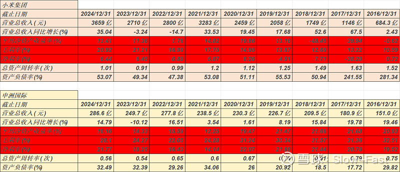 这两天和朋友讨论小米,对照了一下小米集团和传统代工业务的申洲国际的数据。 从毛利率、净利率、负债表、周转率、ROE及成长性等纬度,到底哪个公司的商业模式更好?竞争优势更可持续呢? 无论如何,这个从投资的角度至少值得思考啊。