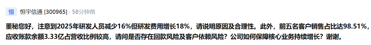 $恒宇信通(SZ300965)$ 在互动易上看到一个针对恒宇信通年报的提问,转过来供大家参考。