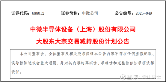 以中微公司为例,2025年9月17日至12月16日,其二股东巽鑫(上海)投资有限公司计划通过大宗交易方式减持公司股票不超过总股本的2%。当前,中微公司的市盈率(TTM)为100.6倍;其上半年收入和利润增速分别为43.88%和36.62%。中微公司的PEG指标超过2,尽管中微公司未来发展前景广阔,但就目前来说,其估值显然进入“泡沫”区间,所以,大股东减持“合情合理”。