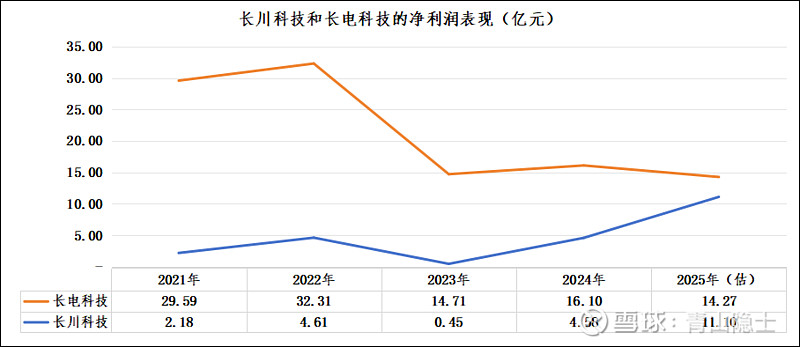 从2021年到2025年,长电科技的年归母净利润由29.59亿元震荡下降至14.27亿元,降幅约为51.77%;同期,长川科技的年归母净利润实现显著突破,从2.18亿元大幅增长至11.1亿元,增幅高达409.17%。