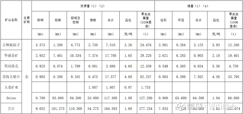根据山金国际2024年年报,山金国际的黄金资源量为277.2吨,黄金储量为137.1吨。山金国际持有吉林板庙子、华盛金矿、黑河洛克、青海大柴旦、玉龙矿业、纳米比亚Osino的权益分别为95%、60%、100%、90%、76.67%、100%。由此计算可得,山金国际的黄金权益资源量为255.7吨,黄金权益储量为125.3吨。