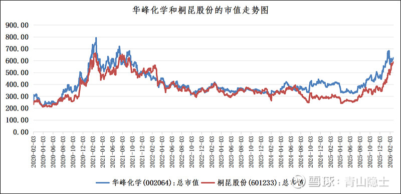 华峰化学与桐昆股份的市值走势呈现出高度同步的特征,这为构建“配对交易”策略提供了坚实基础。从2020年至今的市值走势图可以清晰地看到,两家公司的市值波动方向基本一致,在2021年初的行业景气高点同步冲高,随后在2022至2023年的周期下行阶段同步回落,并在2024年下半年开始同步反弹。经测算,两家公司市值的相关系数高达89.1%,这一强相关性验证了它们在行业属性、盈利驱动和市场预期上的高度趋同。