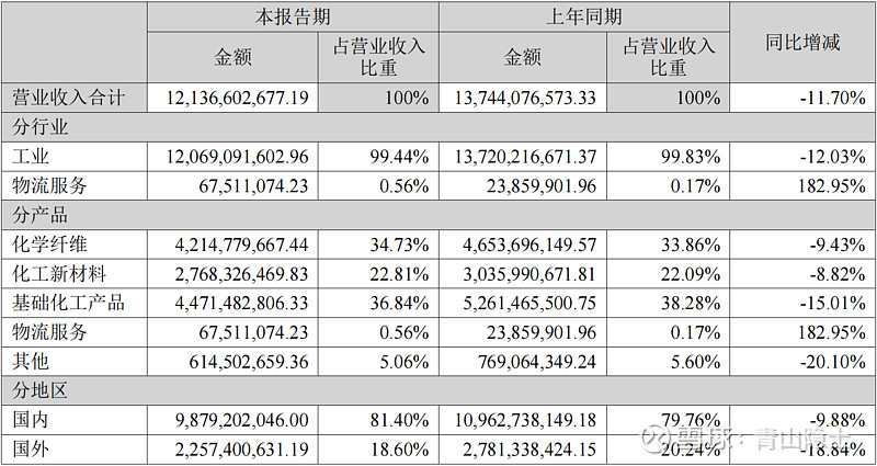 从盈利能力看,各板块毛利率表现出现明显分化:化学纤维板块毛利率同比提升3.68个百分点,显示出成本优化与产品结构升级带来的盈利改善;而化工新材料板块与基础化工产品板块毛利率则分别同比下降0.98个百分点和11.08个百分点,主要受上游原材料价格波动、行业供需格局变化等因素压制,盈利压力显著。