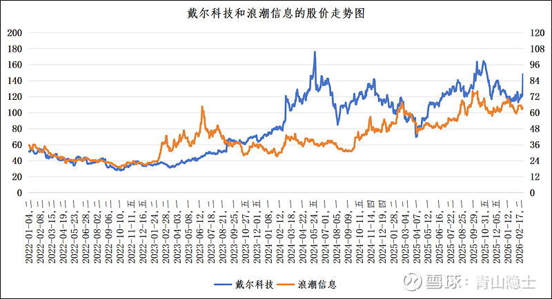 从2022年至今,戴尔科技与浪潮信息的股价走势并非简单的“同涨同跌”,而是呈现出阶段性联动、阶段性分化的特征。这主要是因为两家企业所处的产品市场与资本市场存在差异。