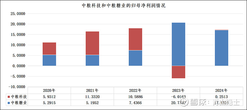 之所以出现股价走势的显著分叉,核心驱动在于二者业绩端出现了极致的分化与反转。2020-2022年,中粮科技与中粮糖业的归母净利润始终处于相近区间,其中中粮科技盈利规模持续领先,2020-2022年归母净利润分别达5.93亿元、11.33亿元、10.59亿元,均高于同期中粮糖业5.29亿元、5.20亿元、7.44亿元的盈利水平,这也是此前二者股价长期保持高度同步的核心基本面支撑。