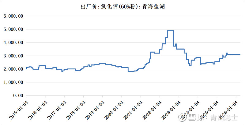 根据同花顺IFind提供的数据,2015—2021年,国内氯化钾价格长期在1800-2500元/吨区间窄幅波动,2022年受地缘冲突与全球供应收缩影响,价格一度冲高至近5000元/吨,随后逐步回落至2200-3200元/吨区间震荡,当前价格中枢已回升至3100元/吨左右,具备较强的事件性催化弹性。