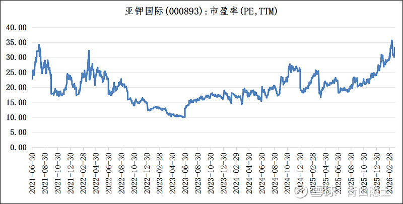 不过,优质标的往往伴随估值溢价,当前板块市盈率普遍在30倍以上。以亚钾国际为例,其市盈率已在2021—2022年高位区间反复震荡,若后续股价回调、估值回落至20倍市盈率附近,将是更具性价比的配置窗口,既能享受行业成长红利,也能获得更充足的安全边际。