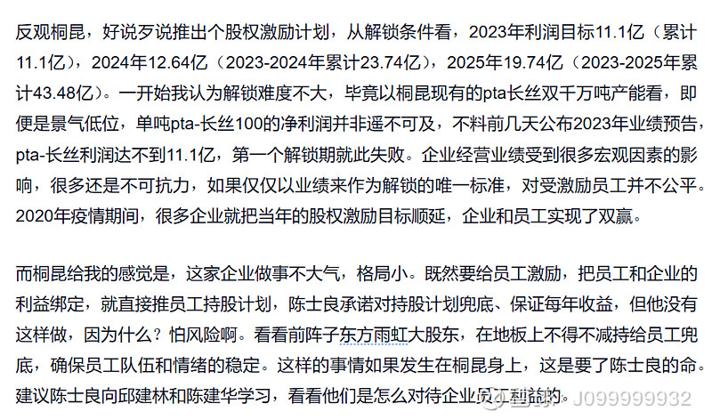 $恒逸石化(SZ000703)$ 再涨个一两块,二期转债又可以强赎了,公司要笑死。这一轮行情,一次性解决两个转债,两期员工持股计划,大股东和员工赚得盆满钵满。类似的有新凤鸣的可转债强赎,恒力石化100亿员工持股计划落袋,都没有辜负过去两个季度的上涨。只有荣盛石化和桐昆股份,涨了个寂寞,没有给员工带来一点好处,得到好处的只有大股东。说到底还是老板的格局不行,看看恒力和恒逸的老板,员工持股动不动就几十亿,承诺兜底保本,陈士良等没有这个魄力的。当年难得推员工激励,以为为员工谋福利了,结果激励个寂寞,最终流产,不久自己却低价大口增持,赚个不要不要的。有句话说的好,敢玩石油的,都是牛人,因为影响油价的因素太多,非常人能把控,在这点上,恒力和恒逸无疑是资本运作的高手。