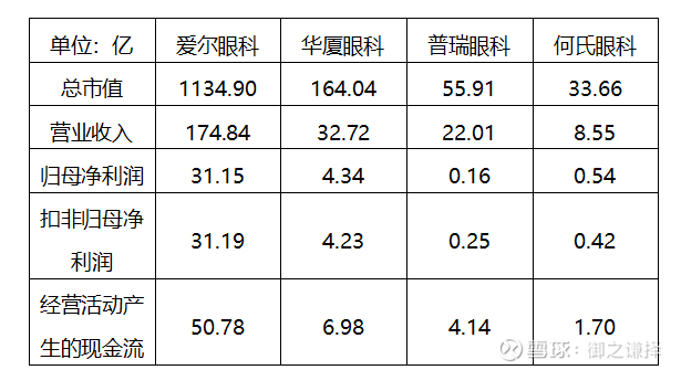 从营收维度看,眼科行业梯队格局清晰,爱尔眼科的龙头地位无可撼动,华厦、普瑞维持稳健增速,何氏眼科的短期营收微调。