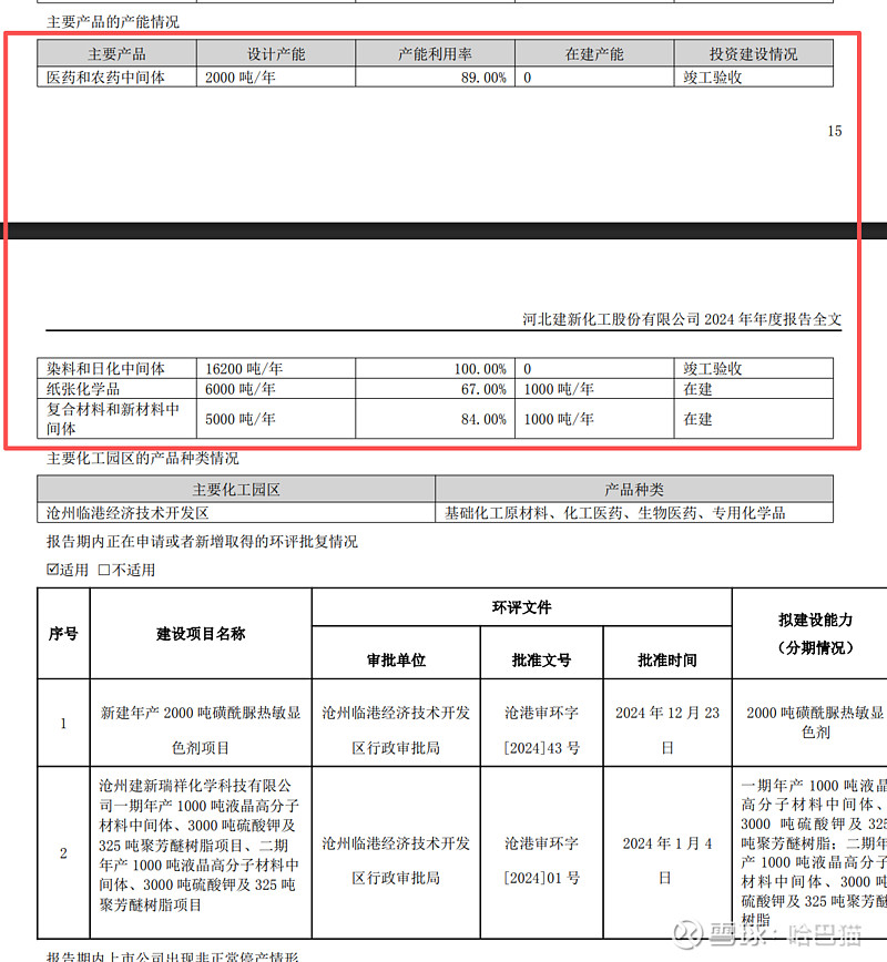 $建新股份(SZ300107)$ 24年年报示:染料和日化中间体产能:16200吨 / 年;医药和农药中间体 2000 吨/年;纸张化学品 6000 吨/年;复合材料和新材料中 间体 5000 吨/年。