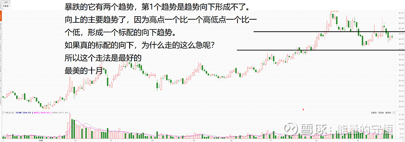 暴跌的它有两个趋势,第1个趋势是趋势向下形成不了。向上的主要趋势了,因为高点一个比一个高低点一个比一个低,形成一个标配的向下趋势。