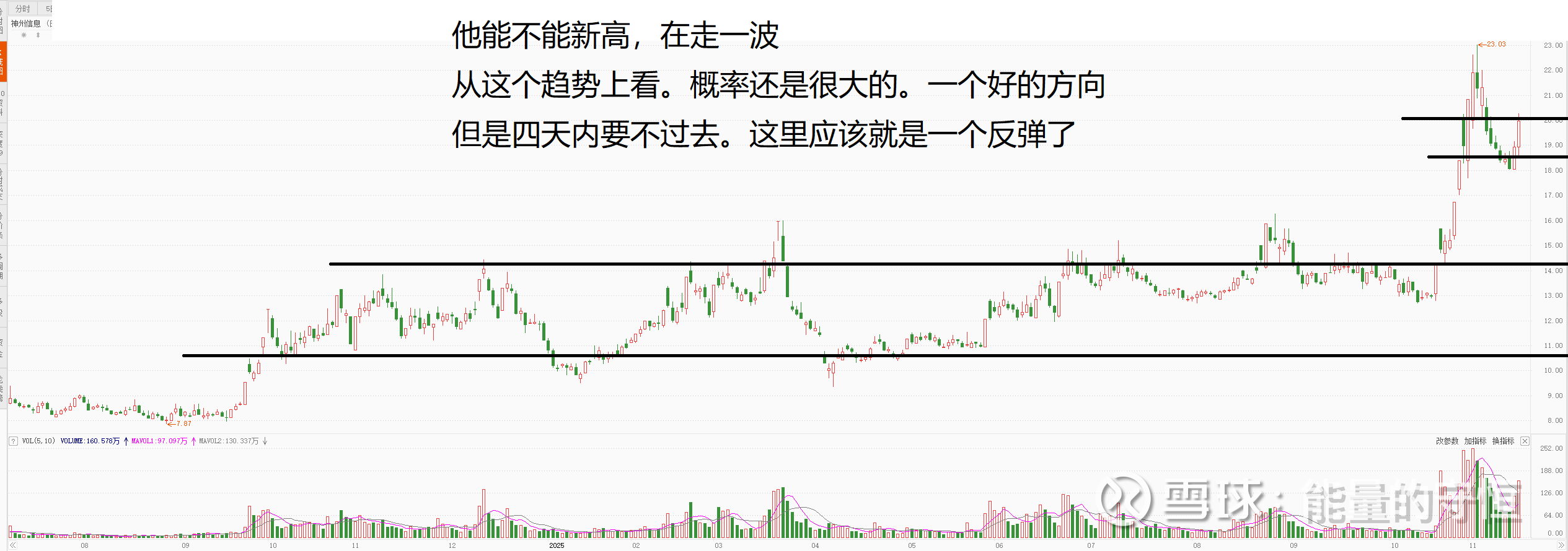 他能不能新高,在走一波 从这个趋势上看。概率还是很大的。一个好的方向 但是四天内要不过去。这里应该就是一个反弹了