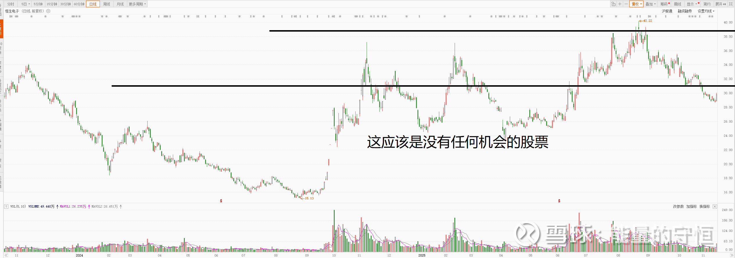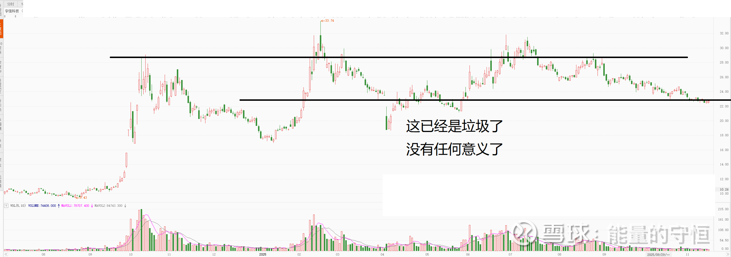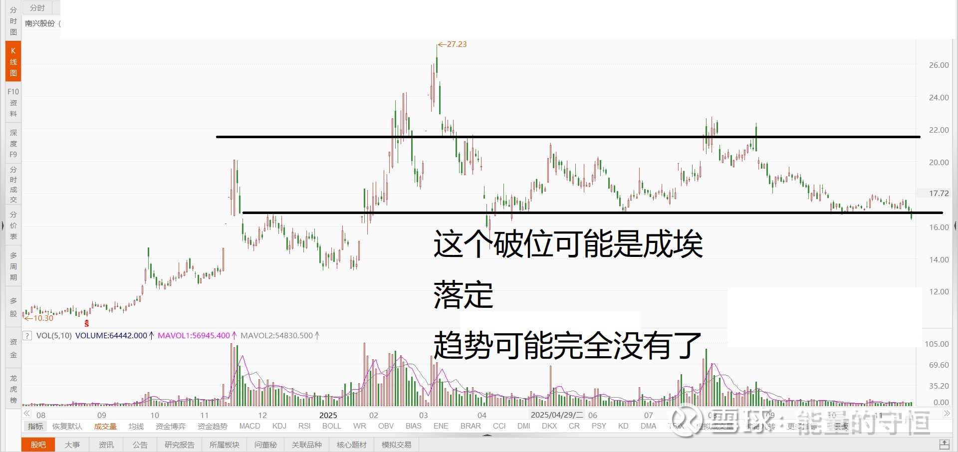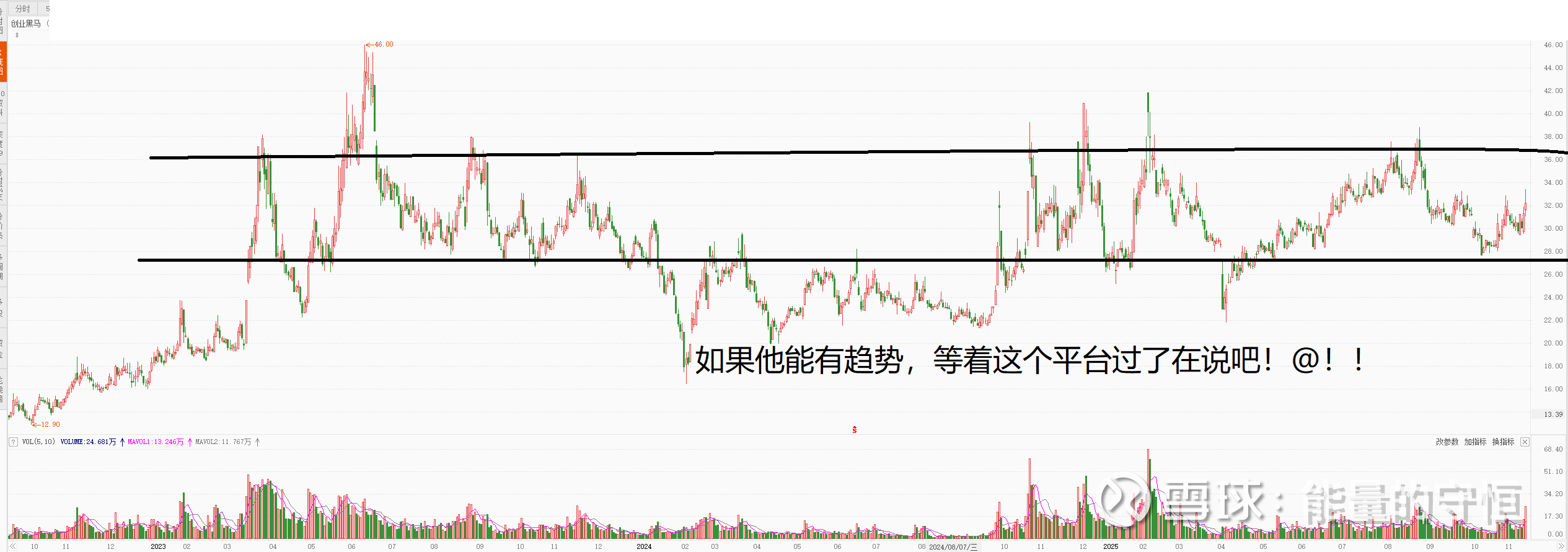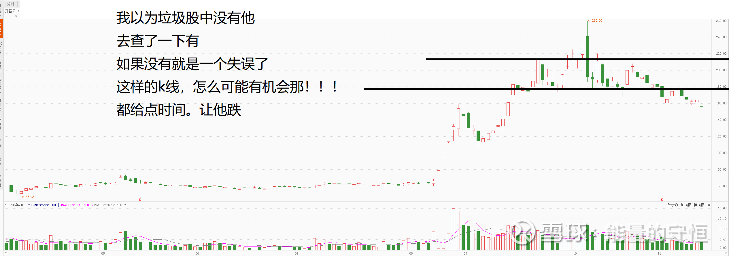 这是一个标配的垃圾股,平台下方趋势向下