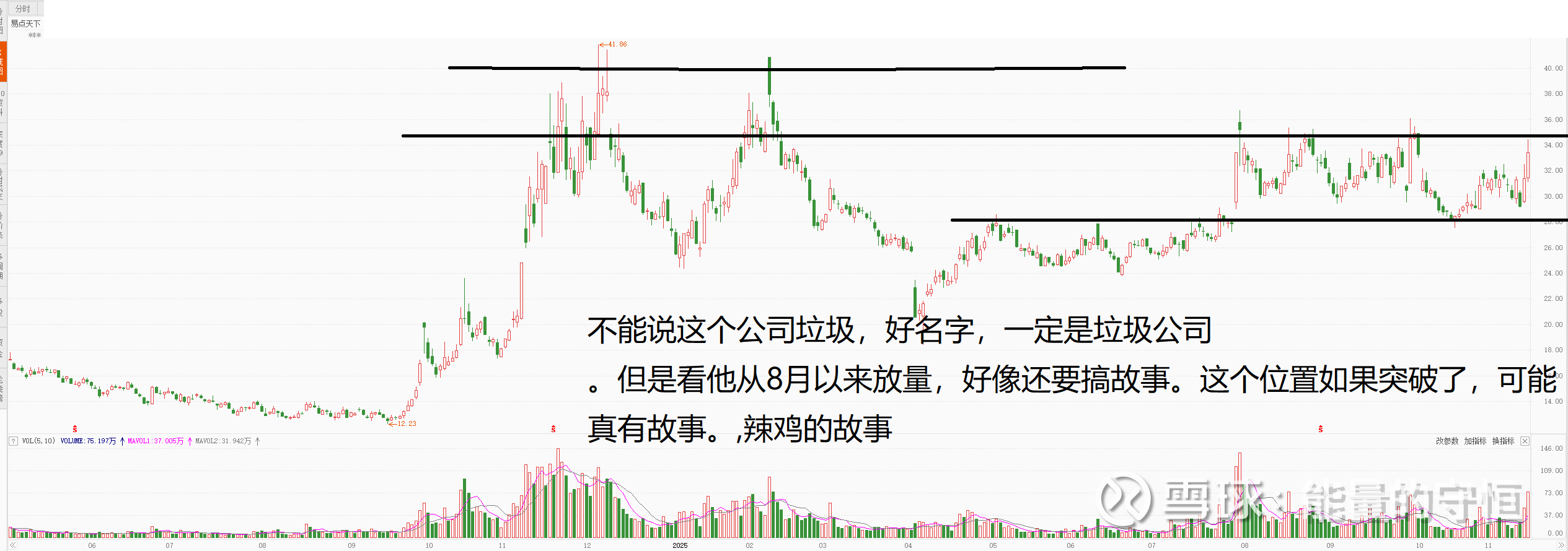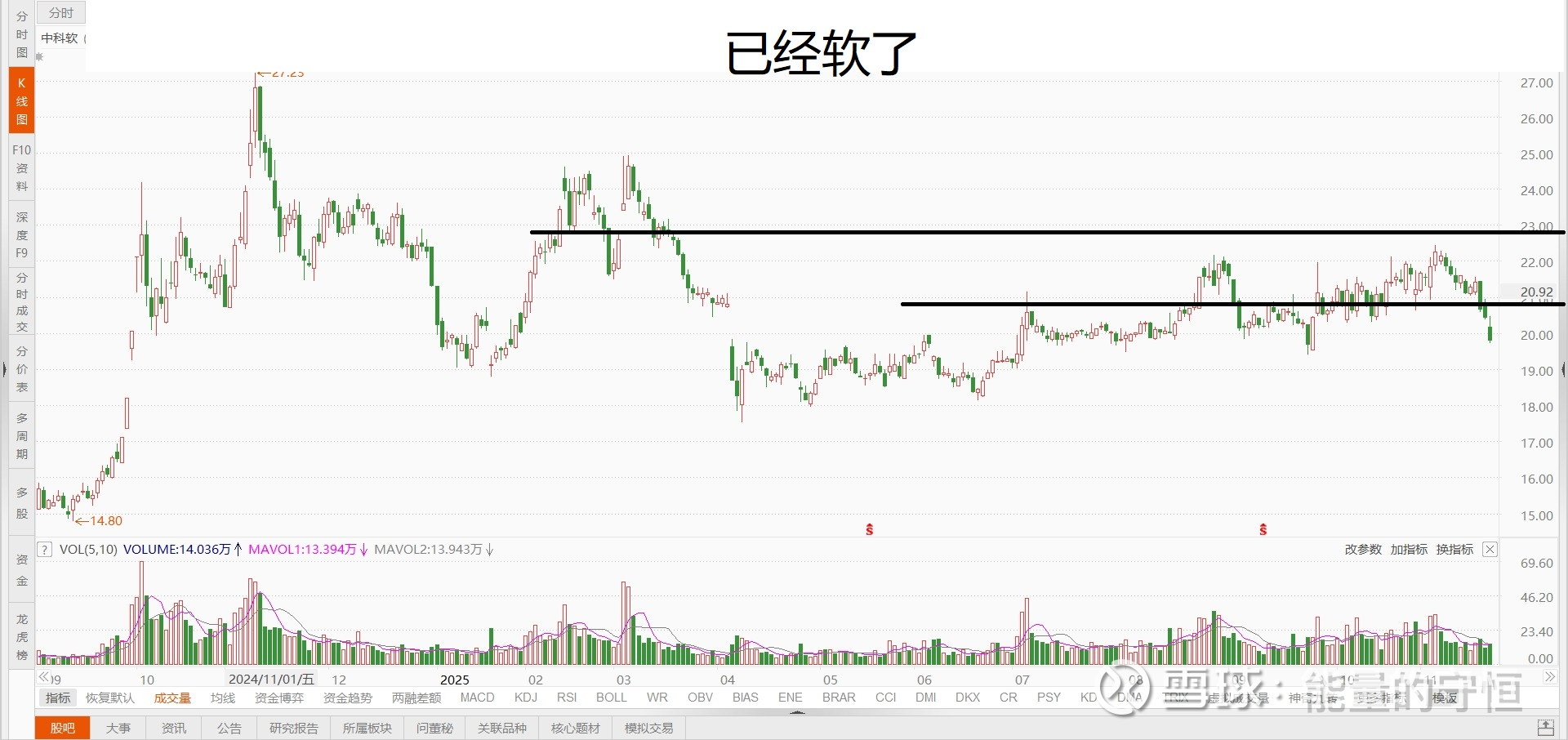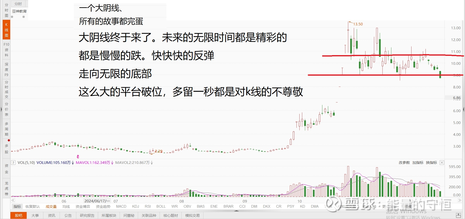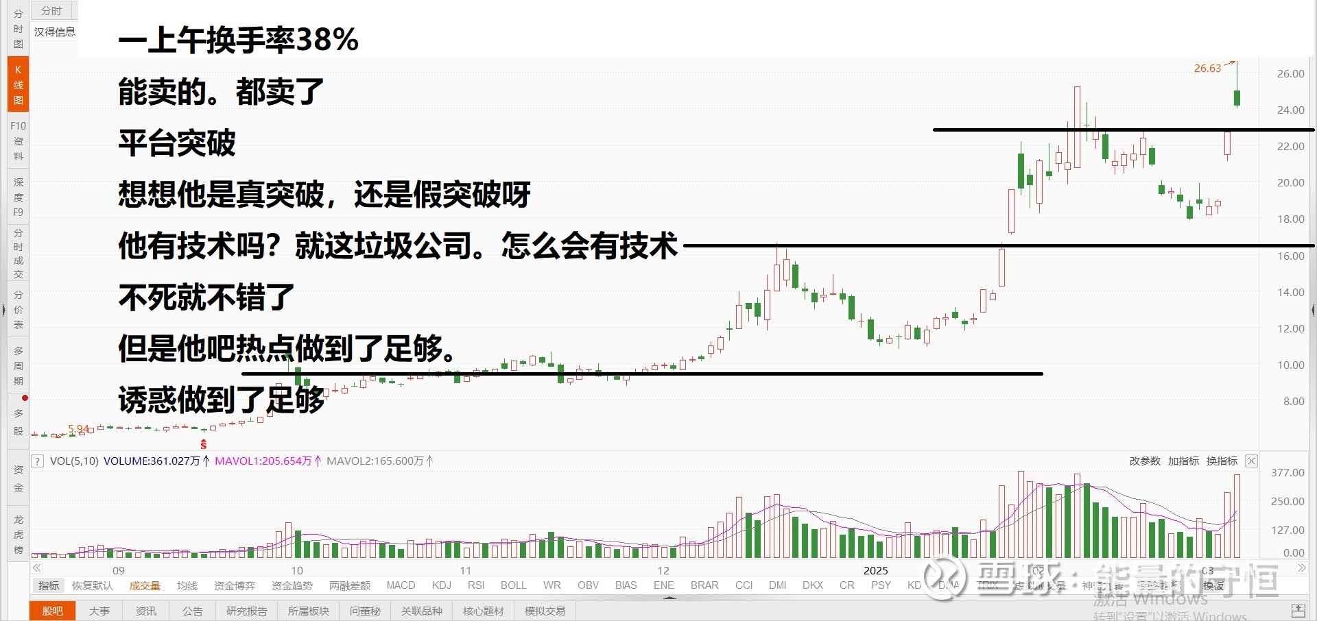 这是一个标配的垃圾股,平台下方趋势向下