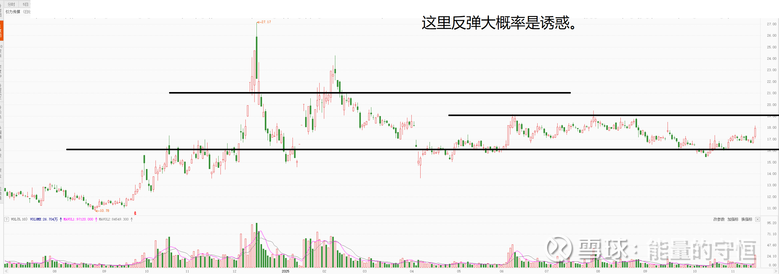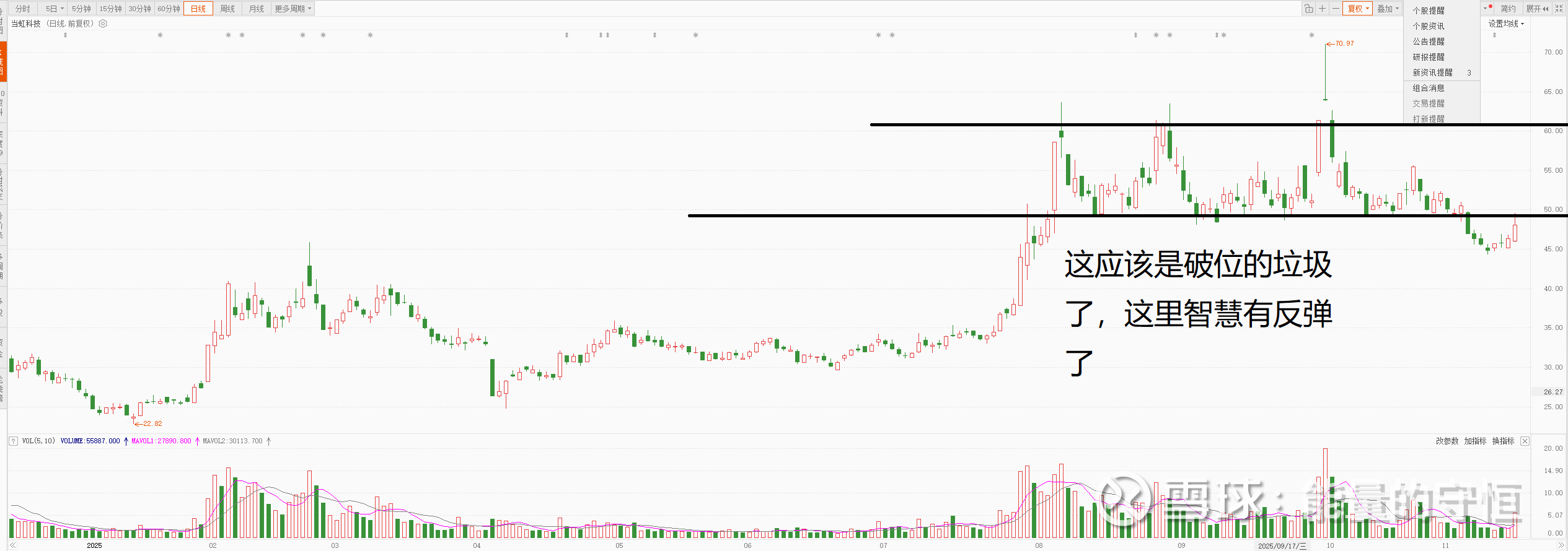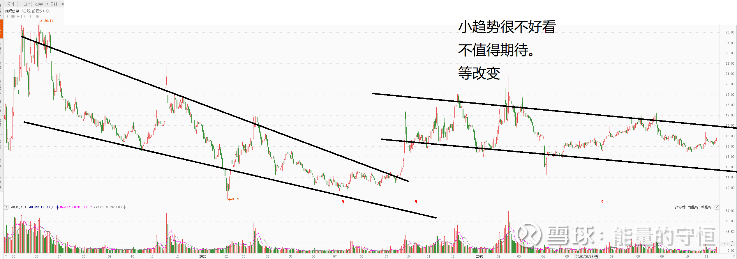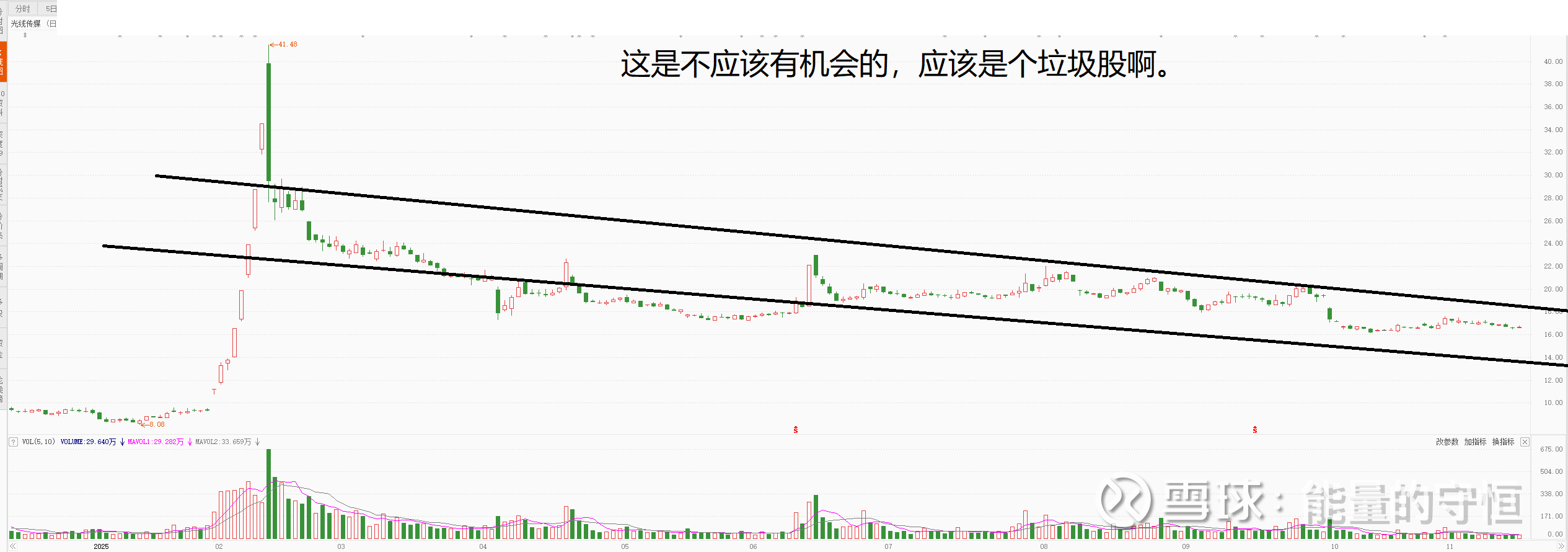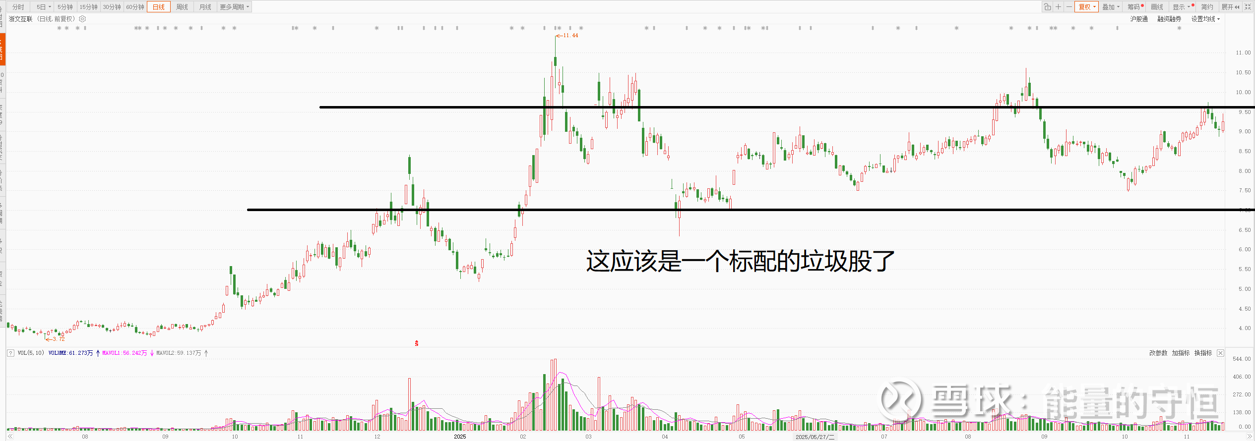 这是一个标配的垃圾股,平台下方趋势向下