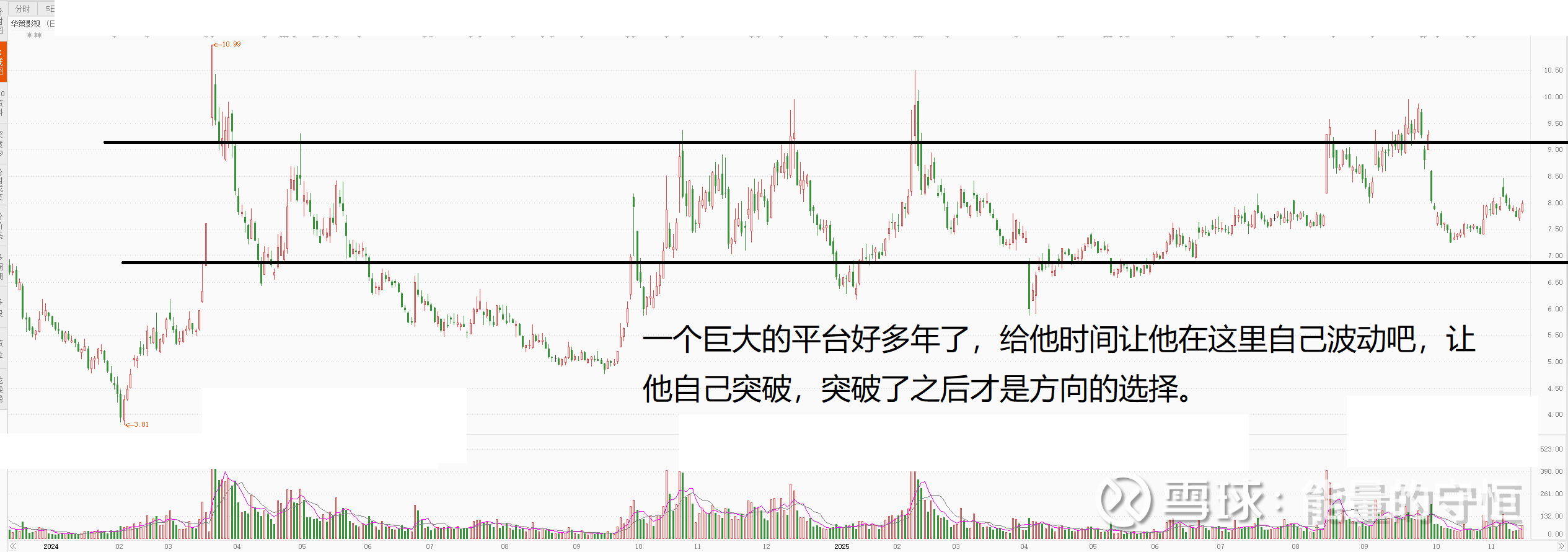 一个巨大的平台好多年了,给他时间让他在这里自己波动吧,让他自己突破,突破了之后才是方向的选择。