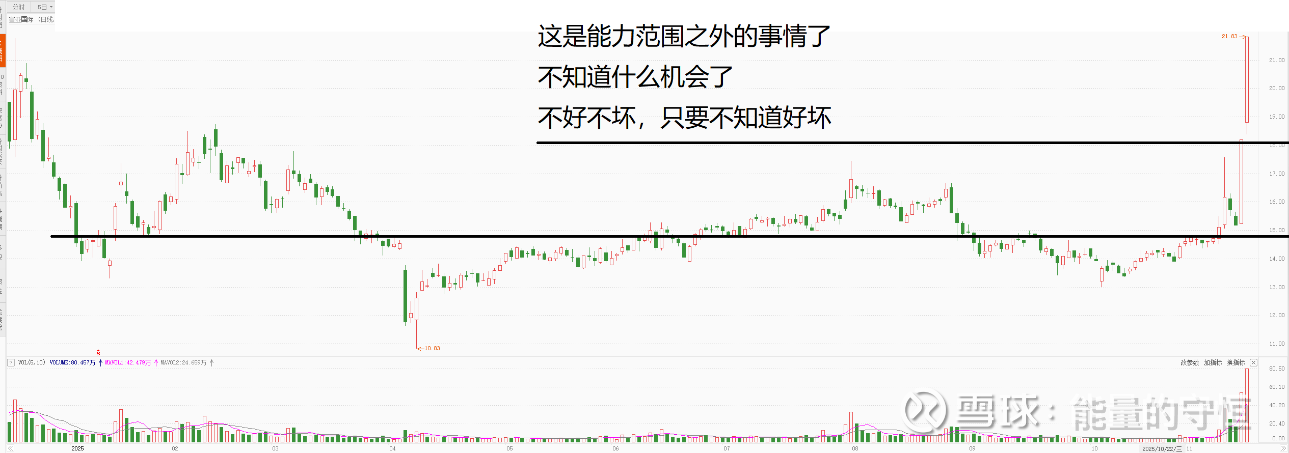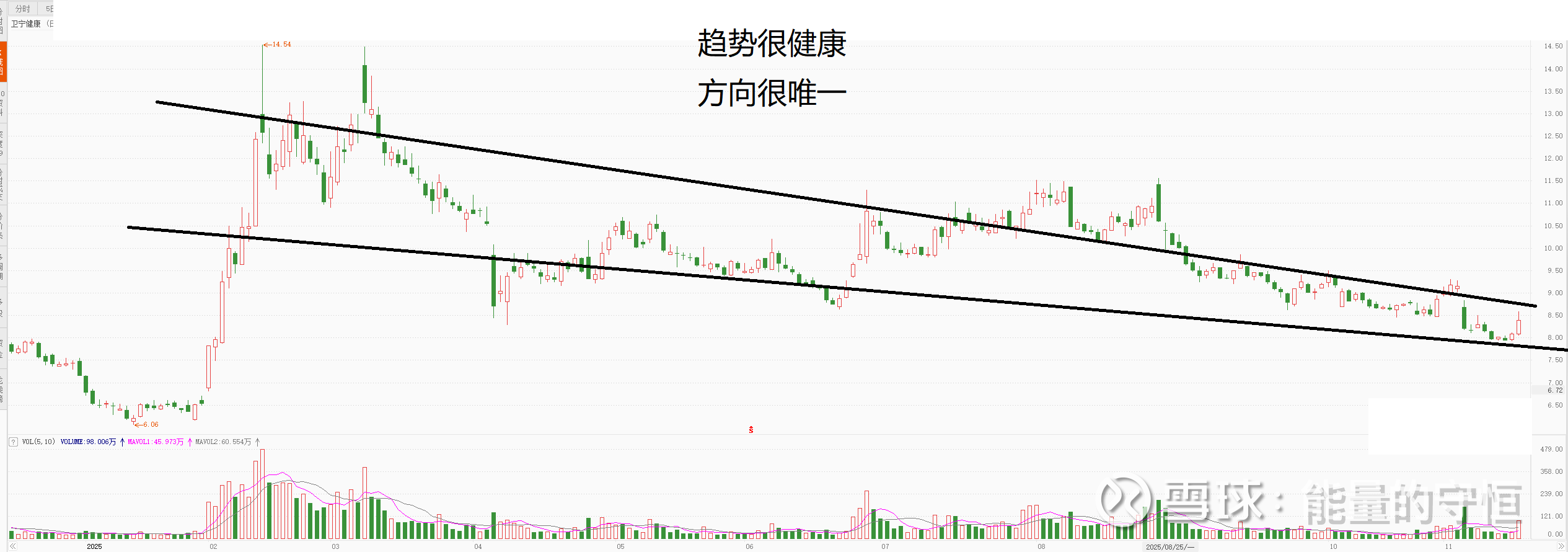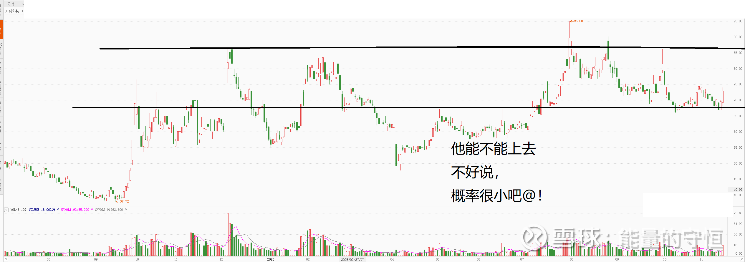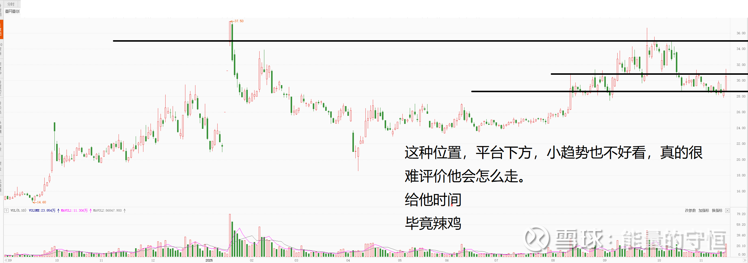 这种位置,平台下方,小趋势也不好看,真的很难评价他会怎么走。 给他时间 毕竟辣鸡