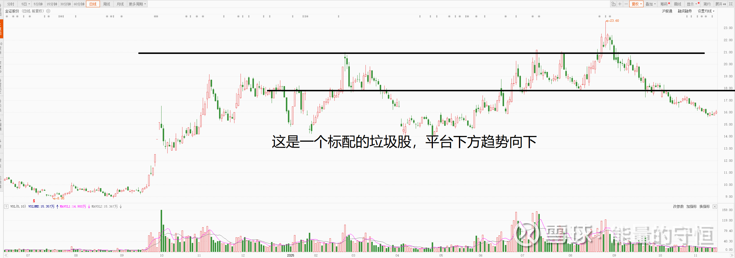 金证股份 这是一个标配的垃圾股,平台下方趋势向下