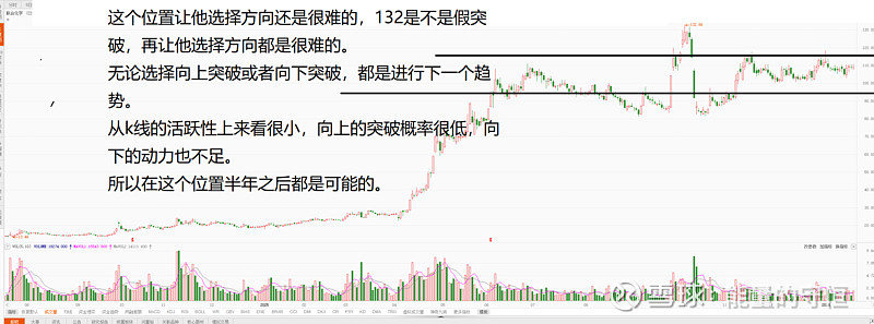 这个位置让他选择方向还是很难的,132是不是假突破,再让他选择方向都是很难的。