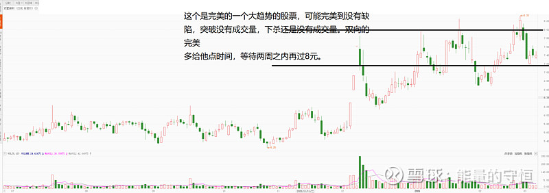 这个是完美的一个大趋势的股票,可能完美到没有缺陷,突破没有成交量,下杀还是没有成交量。双向的完美