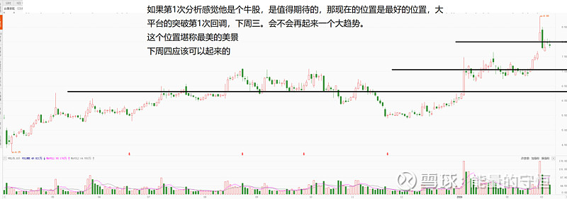 如果第1次分析感觉他是个牛股,是值得期待的,那现在的位置是最好的位置,大平台的突破第1次回调,下周三。会不会再起来一个大趋势。