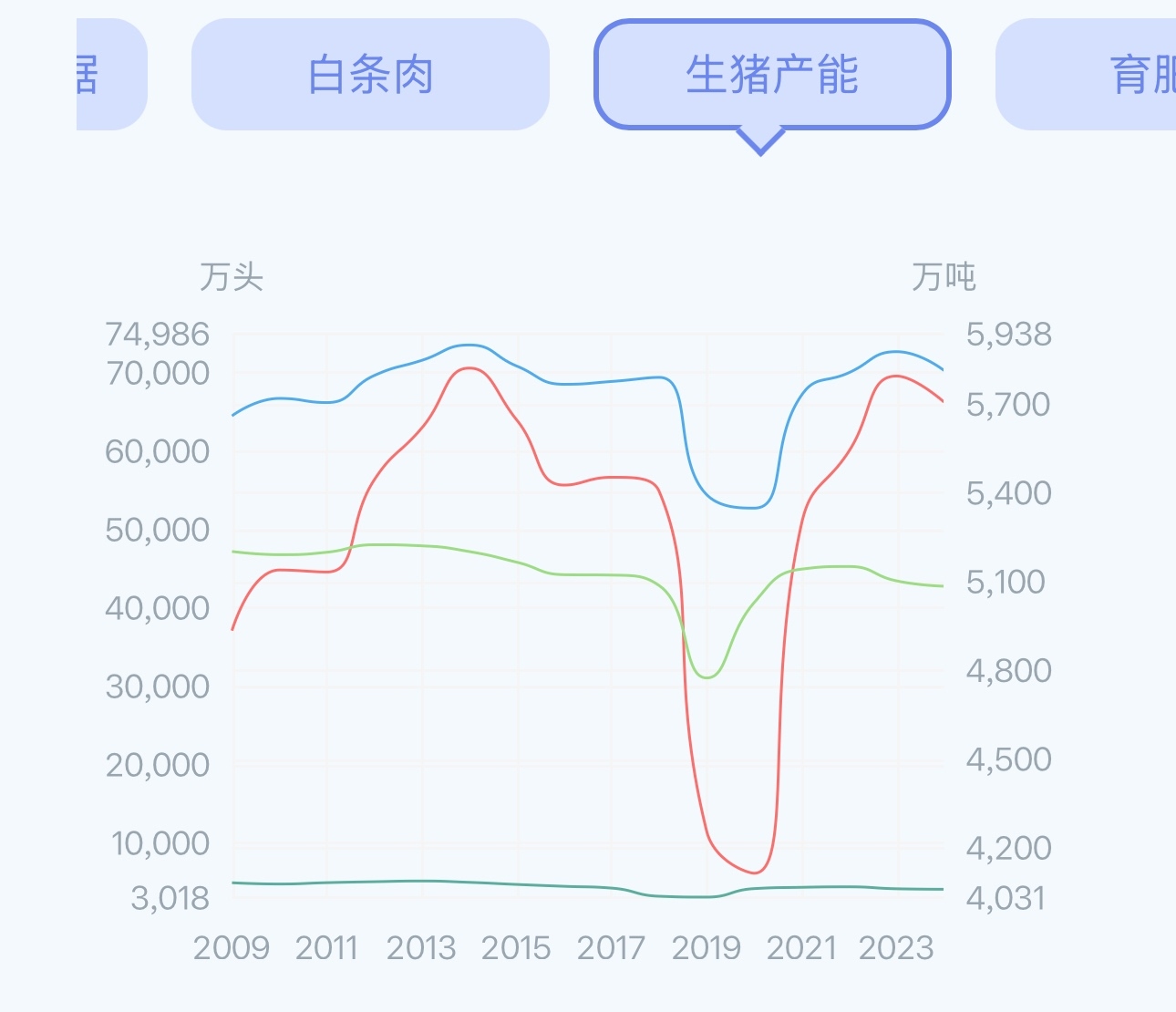 又站在猪周期新一轮的起点上,但这一次和以往可能不太一样。看了《生猪产业发展形势分析与展望报告》和2024修订的《生猪产能调控实施方案》,国家更加鼓励集团公司提高市占率,可能是因为集团公司产能更容易监管,更方便调控周期波动幅度,结合最近生猪价格持续低迷和仔猪价格上涨,个人认为可能是上一轮周期的低谷,结合监管的限制措施,貌似挺有看头。重点关注现在还有实力扩产能并且成本较低的公司。$德康农牧(02419)$