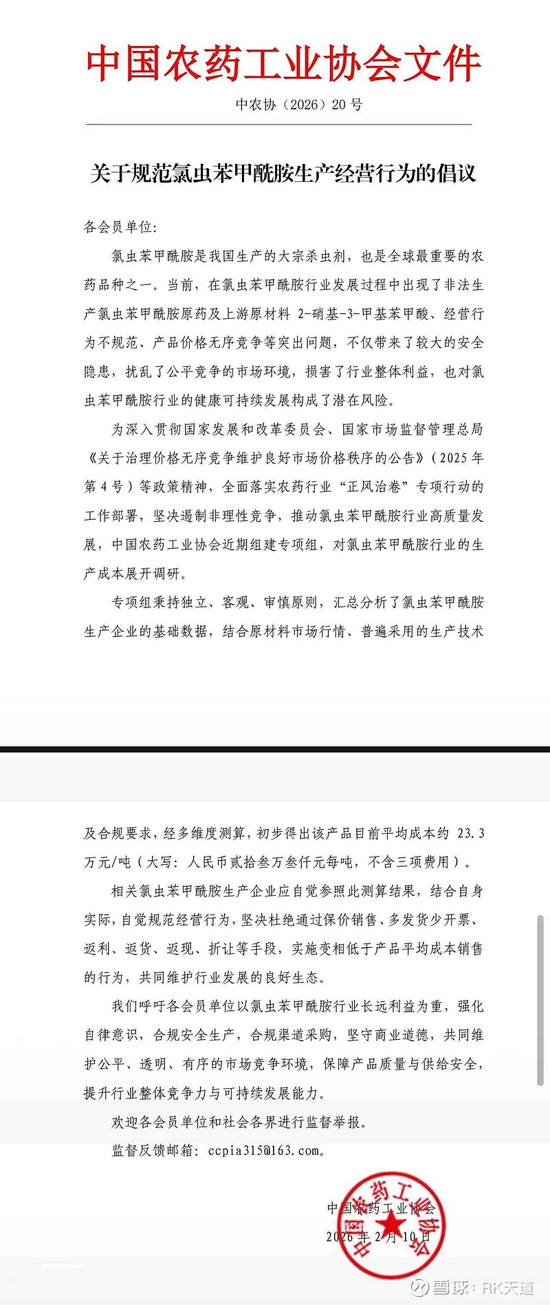 农药协会今日发文,规范康宽(氯虫苯甲酰胺)生产经营