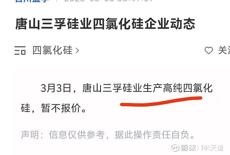 $三孚股份(SH603938)$ 3月3日,唐山三孚硅业生产高纯四氯化硅,暂不报价。高纯四氯化硅(SiCl₄) 是现代高科技产业的核心基础材料,被誉为半导体和光纤产业的“血液”,其纯度通常要求达到5N(99.999%) 甚至7N(99.99999%) 级别。其中,光纤通信是其最核心用途。光纤预制棒:作为制造光纤的唯一核心原料,通过火焰水解工艺生成高纯度二氧化硅(SiO₂),构成光纤的纤芯和包层,其纯度直接决定了光纤的传输损耗和信号质量,是5G、数据中心和高速互联网的基石。