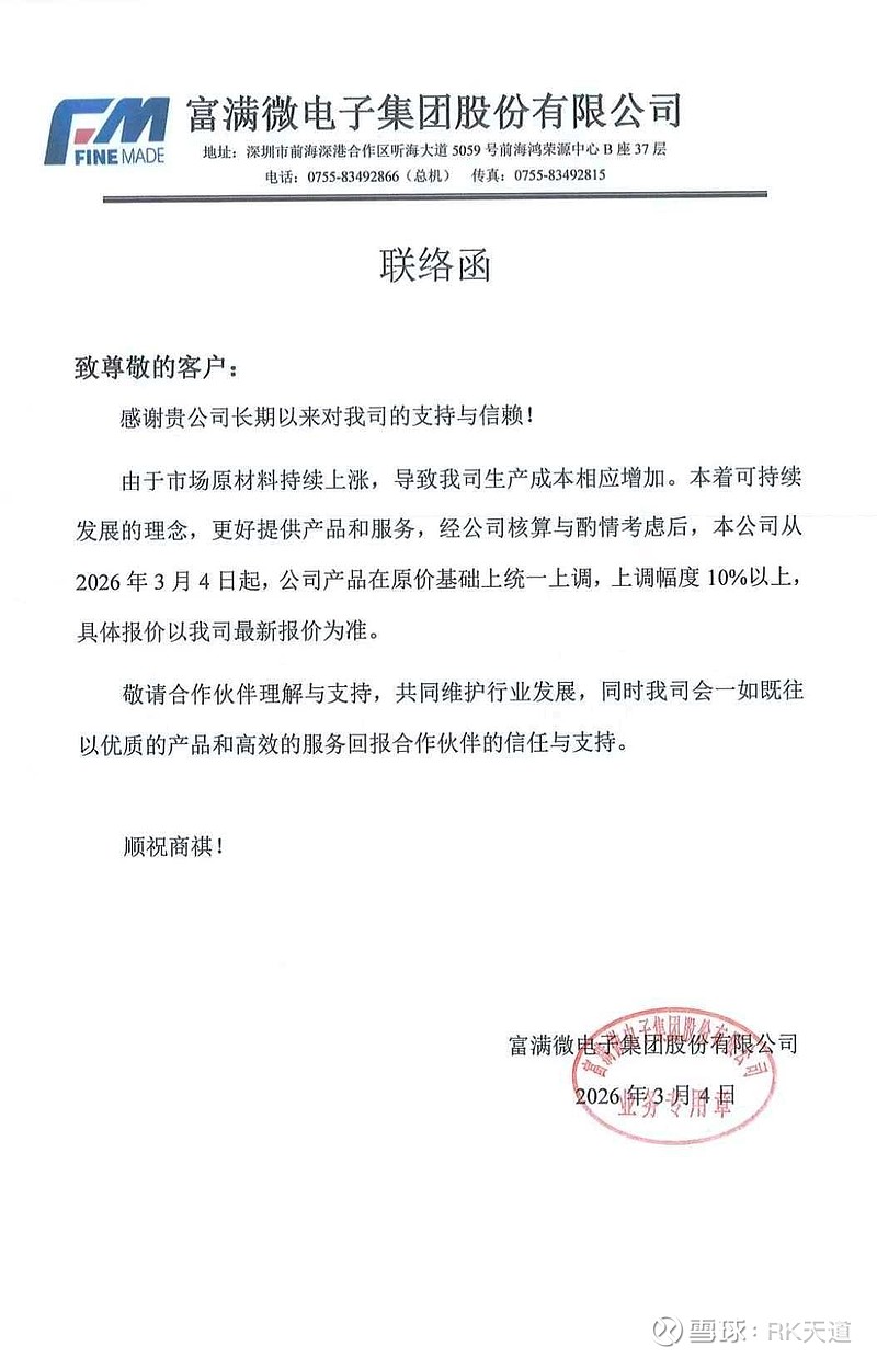提价函。