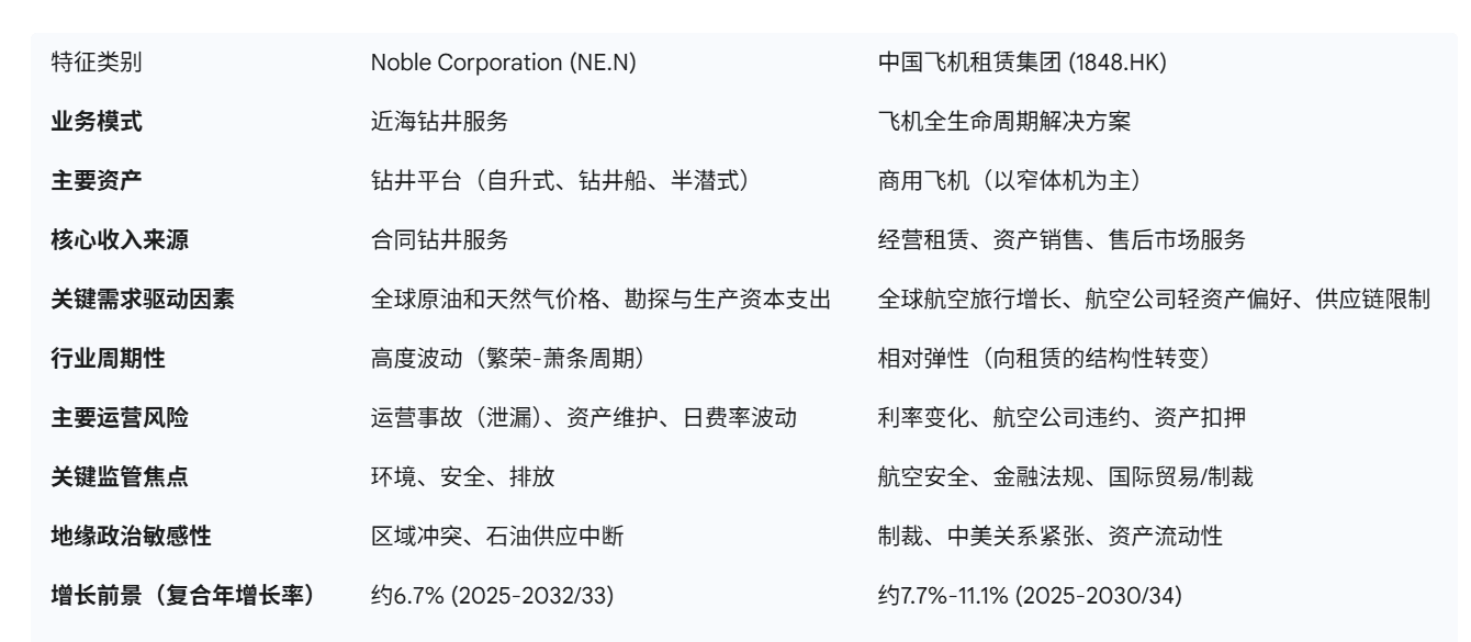 Noble Corporation 和中国飞机租赁集团在业务模式上共享几个关键特征。