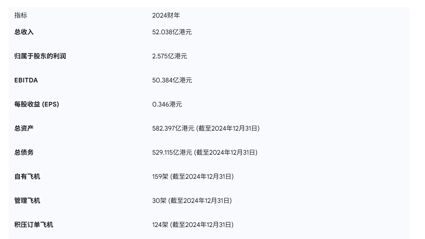 中国飞机租赁集团在2024-2025年的财务表现显示出强劲的复苏。2024财年,公司总收入为52.038亿港元(同比增长9.2%),归属于股东的利润为2.575亿港元(同比增长809.9%),EBITDA为50.384亿港元(同比增长15.1%),每股收益为0.346港元(同比增长810.5%) 14。这反映出公司从2023年较低利润(2830万港元)中强劲复苏 6。2025年第一季度,全资子公司中飞租赁(天津)的未经审计财务信息显示,总收入约为人民币10.7554亿元 49。公司预计2025财年盈利将反弹,主要受租金费率上升、融资成本下降和资产销售的驱动 4。