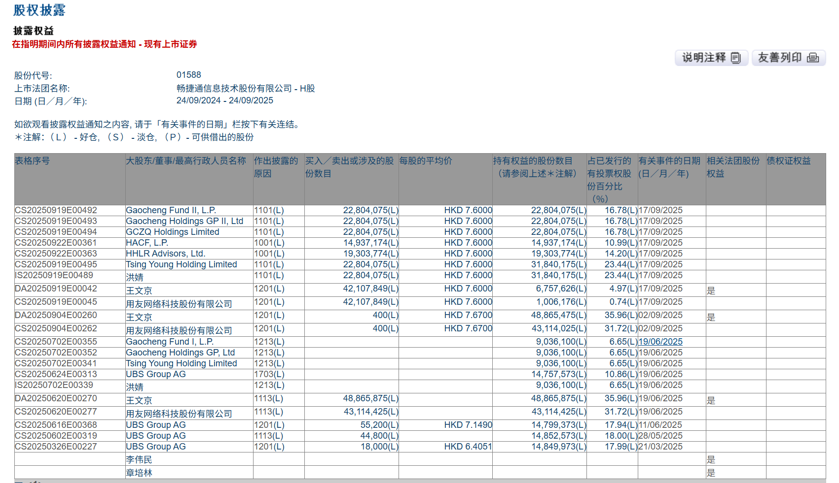 据港交所最新权益披露资料显示,于9月17日,高瓴资本和高成资本大幅入股及增持畅捷通,畅捷通当日股价上涨近20%。