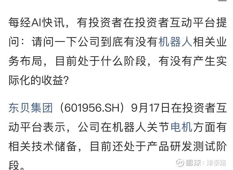 东贝集团在回复投资者时表示,将根据市场需求和技术研发进展,逐步推进机器人关节电机的量产。随着技术的成熟,预计未来将会在自动化、智能制造等领域展现出强大的应用潜力。与此同时,东贝集团在其他电机领域的技术优势也将为其在机器人市场的成功奠定基础。