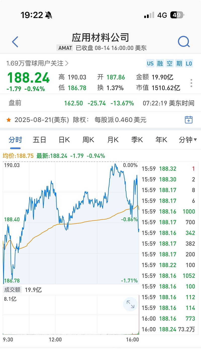 华海清科的主要竞争对手,万亿市值巨无霸应用材料公司(AMAT),财报不及预期,盘前暴跌,为什么财报不及预期呢?主要是订单被华海清科抢走了,这预示着华海清科半年报必将大超预期。望广大公募私募量化基金知晓,下周一顶板华海清科。