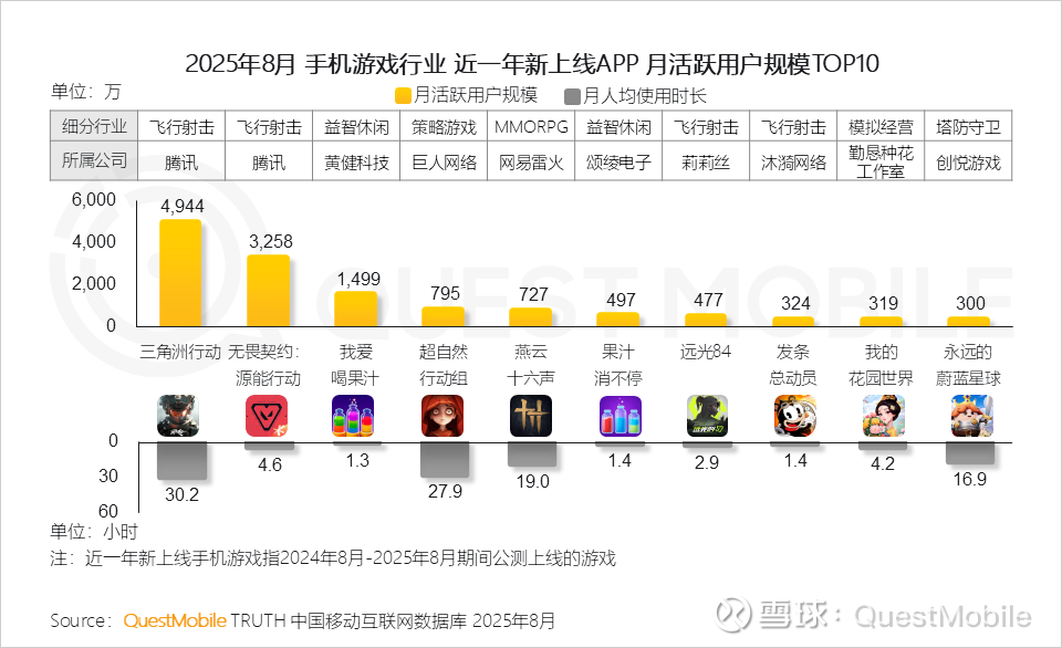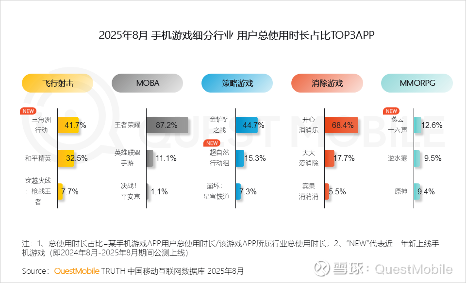 2、头部游戏持续主导用户时长,多品类呈现“一超多强”格局,而新上线游戏在多个细分赛道快速抢占份额,展现强劲增长动能