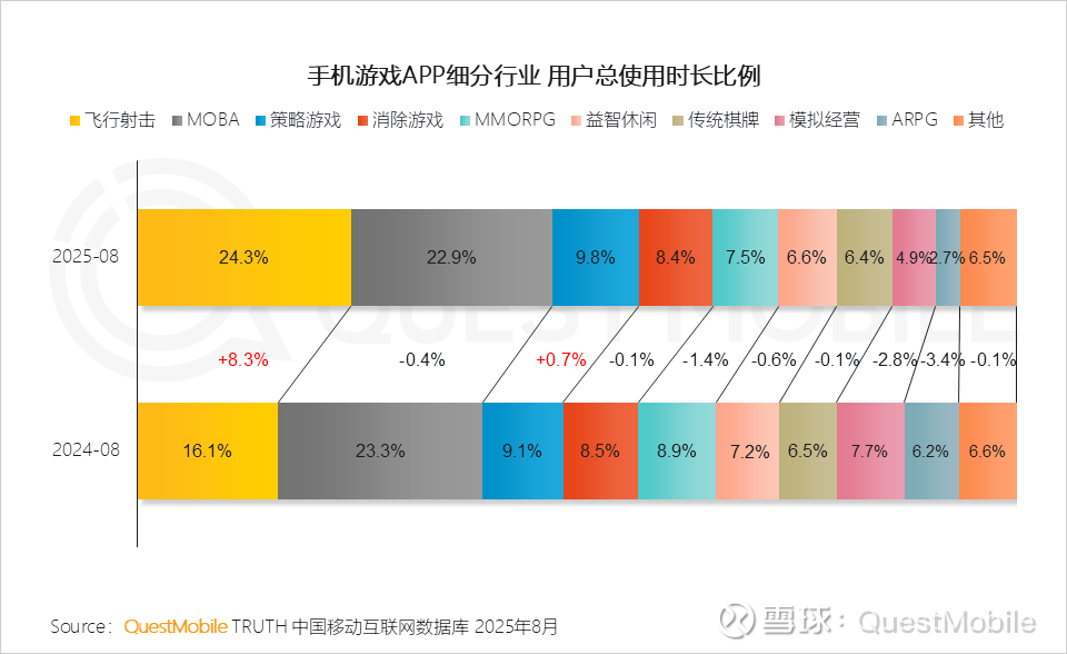 1、飞行射击、MOBA、策略游戏等时长占比突出,其中,飞行射击、策略游戏在新游戏加持下,时长份额进一步提升