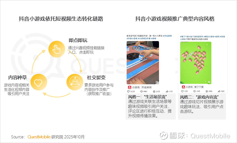 5、抖音小游戏依托短视频生态实现流量转化,平台已形成“内容种草—即点即玩—社交裂变”的成熟闭环