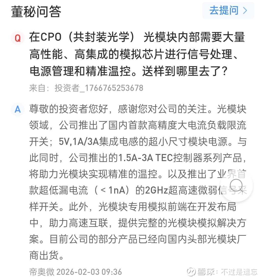 帝奥微在通信 数据中心 光模块领域布局已久,以下截图自官网。