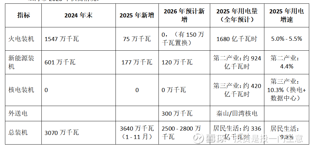 火电装机新增新能源小时数风光综合按照2200个小时,新能源新增发电量:1600*2200/10000=352亿度;核电和火电按照4800小时,新增600*.48=288亿度,二者相加640亿度。而第二产业2025年新增用电4.5%左右,新增需求261亿度。因为供应增加/需求增加=640/261=2.45倍,新增供应占比6.67%,而需求增幅为4.5%,6.67%/4.5%=1.48倍。广东省2025年-2026年新增火电装机1500万千瓦,新能源3700万千瓦。