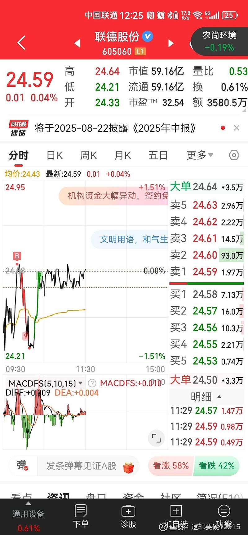 另外一个账户直接全仓压这个,因为低开高走,踩了支撑才上来的,应该下周能给点利润吧。