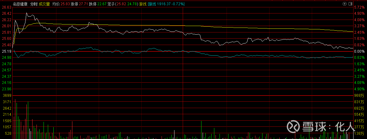 名臣健康高开高走一笔,随后回落运行,尾盘收阳,全天并未进行操作,当前共持仓200000股仓位,成本24.8点,市值505.8,当前获利1.95%,明天重点关注。