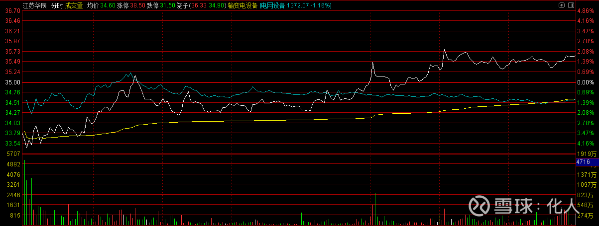 江苏华辰低开后震荡上行,走势稳定向上运行,下午盘收阳,继续持仓看涨,当前共持仓50000股仓位,成本35.5元,市值178.1,当前获利0.75%,明天重点关注。