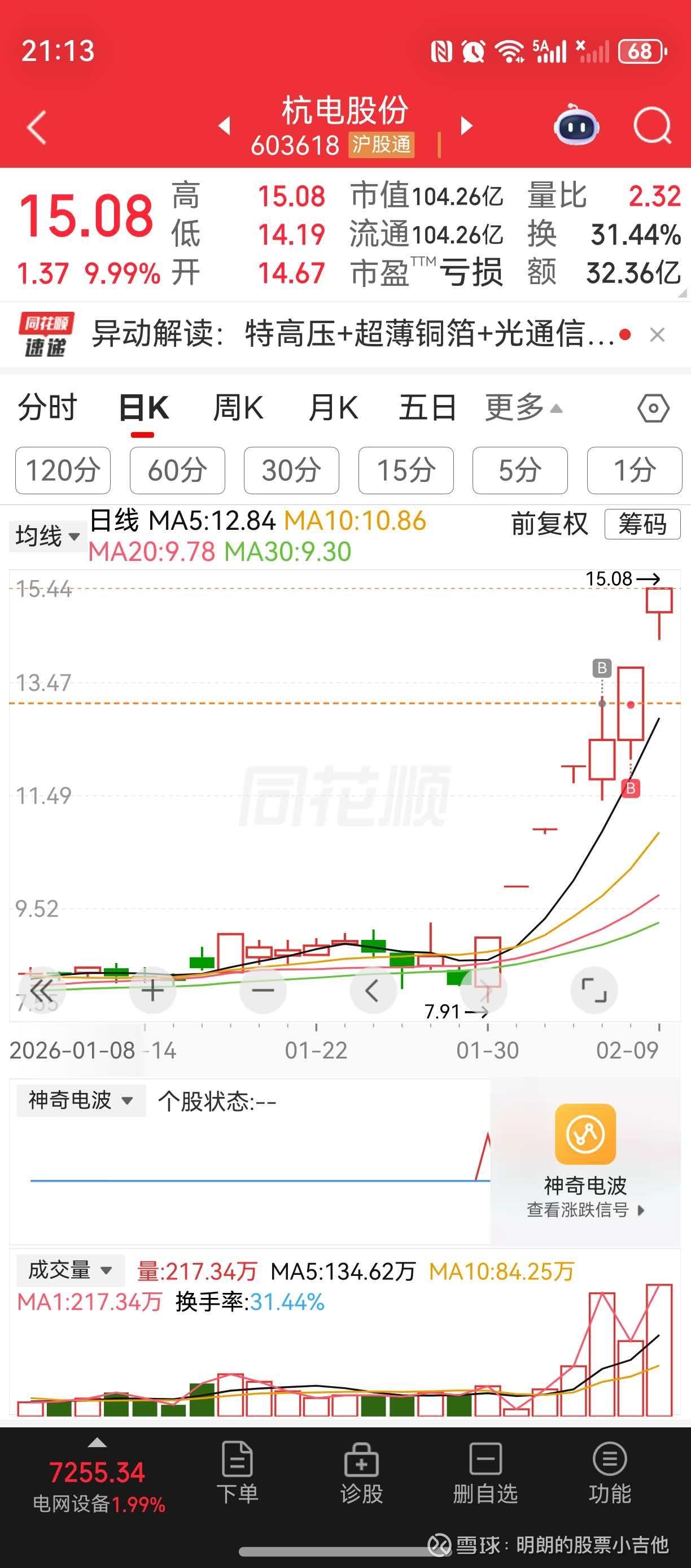 杭电周五预测今天的逼空行情今天也实现,明天还是走逼空行情,因为主力已高度控盘,拉起和打压信手捏来!杭电是月线级别股,至少可以操作到月底。