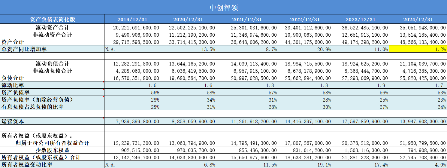 公司近5年的总资产平均增速10%,2024年出现明显下滑;