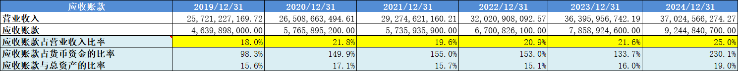 3. 应收票据占比3.7%,占比不大;应收账款占比25%,占比较高;绝大部分都在1年以内,问题不大。