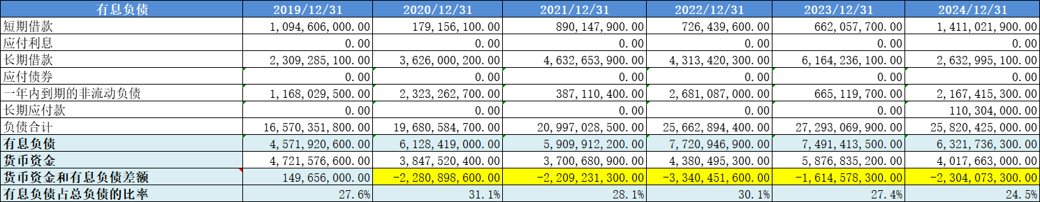 货币资金和有息负债差额长期小于0,这个属于减分项。